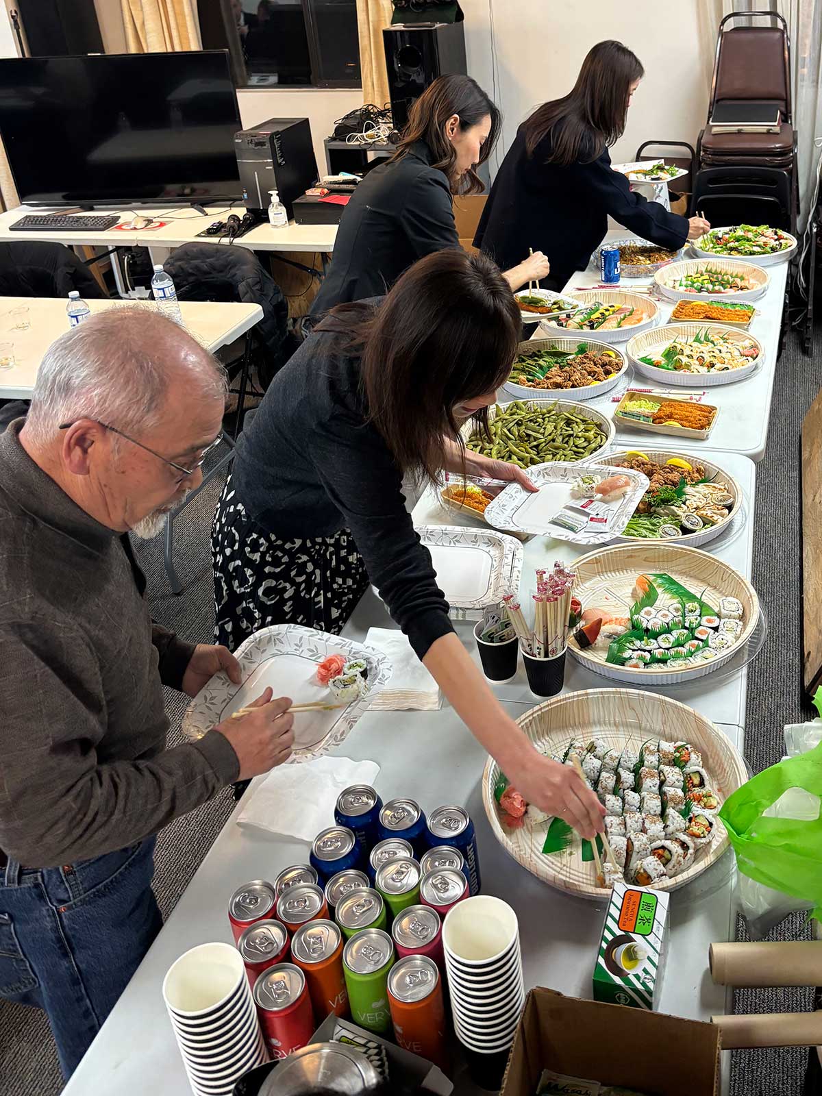 会はビュッフェ形式で進行し、料理の美味しさもまた会話を後押しする大切な要素に。